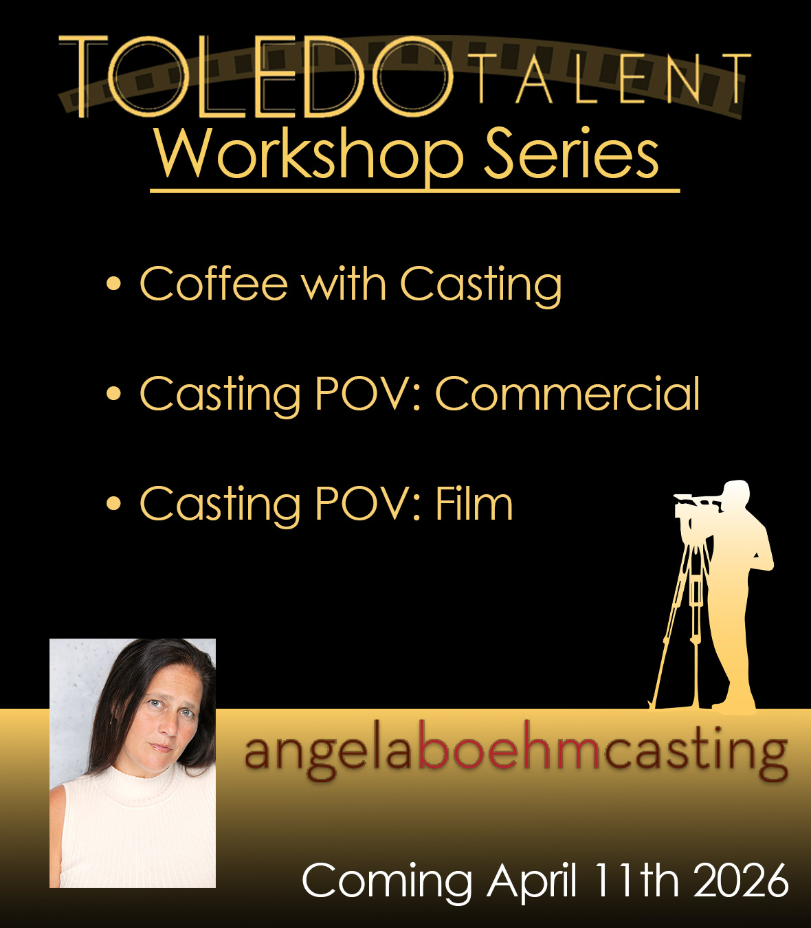 During Coffee with Casting, new actors will sit down with Angela Boehm and receive need to know information about the industry that will help put your acting career on the right path!